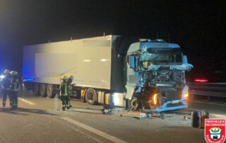 Am Dienstagabend, den 03.02.2026, kam es gegen 17:42 Uhr auf der Autobahn A99 in Fahrtrichtung Nürnberg, kurz vor der Anschlussstelle Haar, zu einem Auffahrunfall zwischen zwei LKW.